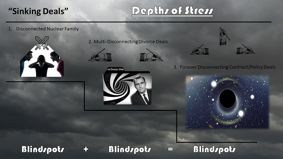 Divorced families with children, child support, and childhood expenses can get caught fixed nixed. They get trapped in an infinite depth of stress. When future child support is based on past income, and that income drops to zero or below zero for whatever reason, then that truly innocent parent is sunk. When future childhood expenses increase, but child support is based on past expenses, then that truly innocent parent can be sunk. These fixed terms leaving men. women and children fixed nixed, are endlessly unaccountable and endlessly un-resolvable. Dangerous deals have dealt so low in family law that it is lower than the depths of driver's licenses being re-purposed and weaponized against and holding back truly innocent back who are simply fixed nixed. May God have mercy on those children who are likewise fixed in Depth 3 Stress. Dangerous deals so low that they're lower than no right to representation in family court when you're poor and can't afford a lawyer. Lower than no right to bail when any opposing false accusation hits hits a parent or their child. Way lower than criminals in their deals.