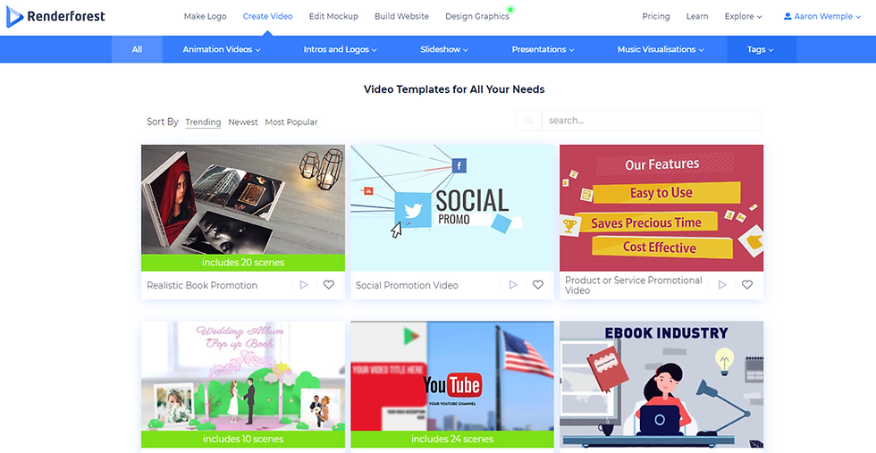 Renderforest offers its customers free or paid branding tools like custom logos, videos, and websites. Tools that they say requires just a little time and effort. So after visiting their website, I clicked on the video tab at the top of the Renderforest homepage to find out.